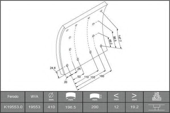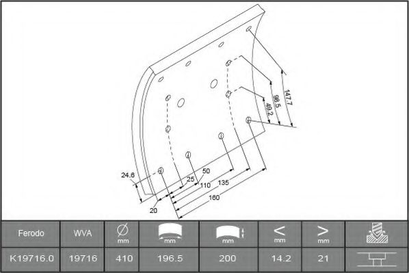Комплект тормозных башмаков, барабанные тормоза FERODO K19716.0TG